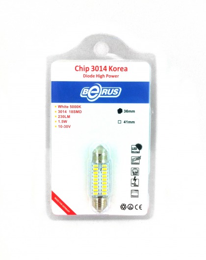 Светодиодная софитная лампа 1036 1.5W предназначена для освещения салона. Состоит из 18 ярких диодов. Лампа намного ярче обычных галогеновых, отлично освещает дорогу ночью и в дождливую погоду. Цвет свечения со временем не изменяется. Служит такая лампа очень долго, при этом потребляет незначительное количество энергии.