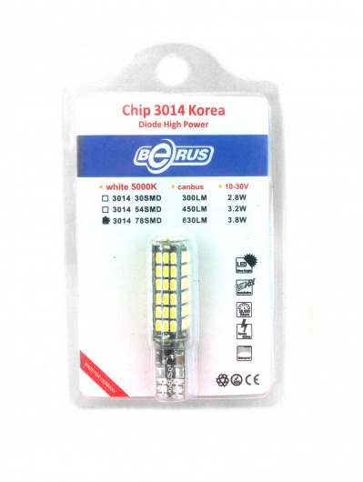 Светодиодная лампа T10 3.8W Canbus предназначена для установки в задние габариты. Она намного ярче обычных галогеновых ламп, отлично освещает дорогу даже ночью и в дождливую, туманную погоду. Цвет свечения со временем не изменяется. Служит такая лампа очень долго, при этом потребляет незначительное количество энергии.
