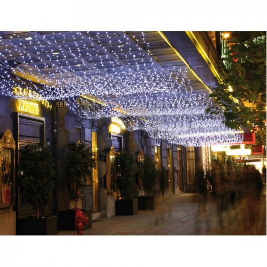 Световой занавес Playlight размером 1.5х2 м. Подходит для новогодней декорации фасадов зданий и улиц. Гирлянда-бахрома состоит из 240 светодиодов; белые светодиоды настривают на таинственную атмосферу и придают праздничному декору шарм и привлекательность. Вы можете соединить светодиодные занавесы между собой в одну новогоднюю композицию. Кроме того, гирлянду-занавес можно использовать в качестве подсветки зданий в тёмное время суток не только зимой. Она выделит ваш дом среди остальных зданий и добавит особое праздничное настроение.
