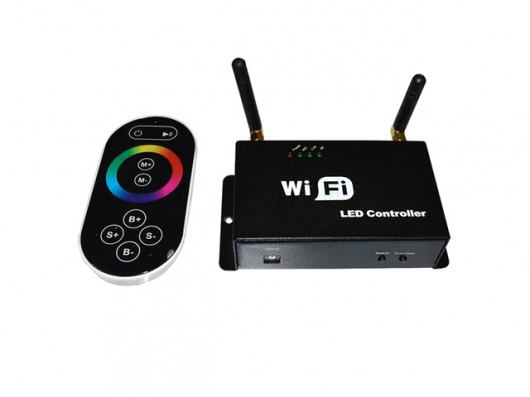 А принцип работы WiFi следующий: Wi-Fi cигнал от мобильного устройства преобразуется в высокочастотный радиосигнал управления RGB контроллерами. Таким образом, сигнал внутри помещения достигает до 50 метров, а снаружи — до 100! А с помощью пульта ДУ с сенсорным кольцом вы легко можете управлять цветом, яркостью и скоростью свечения!