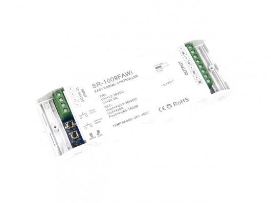 Преобразователь сигнала SR WiFi 1009FA WI с напряжением 12, 24, 36V и допустимой мощностью 240/480/720 W поможет вам управлять цветом светодиодной подсветки с помощью своего мобильного устройства (iphone, ipad) на базе ОС Android и iOS.