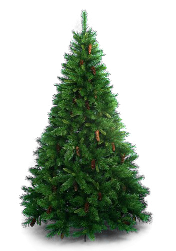 Зеленая сосна с шишками прекрасно смотрится без новогодних украшений. А значит, не нужно покупать массу игрушек — вам достаточно будет приобрести обычную электрическую гирлянду. На ветках, сделанных из ПВХ, необыкновенно красиво преломляется искусственный свет, благодаря чему сосенка приобретает неземной облик. Подсвеченная таким образом, она создаст в выбранном вами помещении волшебную атмосферу новогодних праздников. Эта искусственная сосна станет настоящим украшением интерьера.