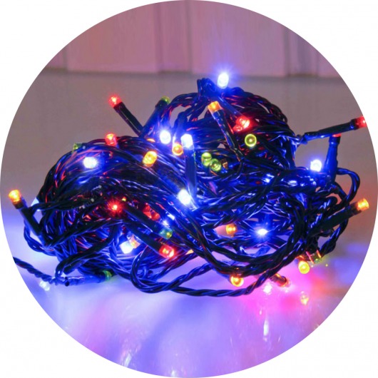 Светодиодная гирлянда длиной 12 метров состоит из 80 многоцветных led диодов. Световая гирлянда поможет вам украсить ёлку любого размера, а также новогоднюю композицию. Электрическая гирлянда гарантированно прослужит вам несколько лет благодаря качественным и пожароопасным светодиодам.