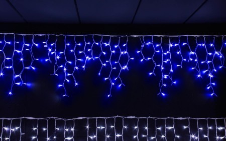 Светодиодный занавес Icicle led размером 3x0.70 м. Благодаря усиленной влагозащите и морозостойкости подходит для новогодней декорации фасадов зданий и улиц. Гирлянда-бахрома состоит из 150 синих светодиодов; вы можете соединить световые занавесы между собой в одну новогоднюю иллюминацию. Кроме того, гирлянду-занавес можно использовать в качестве подсветки зданий в тёмное время суток не только зимой. Она выделит ваш дом среди остальных зданий и добавит особое праздничное настроение.