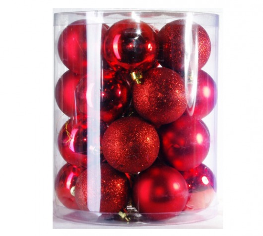 В набор PeneriGifts входит 24 пластиковых елочных шара диаметром 6 см. Этого более чем достаточно, чтобы целиком нарядить любую домашнюю ель. Даже не обязательно добавлять мишуру — любая елка и без нее будет выглядеть элегантно и самодостаточно. Сочетание матовых, глянцевых и переливающихся красных шариков с блестками смотрится ярко, нарядно и гармонично.