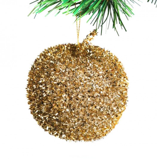 Игрушка на елку в виде блестящего золотого яблока диаметром 10 см будет эффектно, стильно и оригинально смотреться на любой елке. Убедитесь в этом сами и удивите своих гостей. Только представьте, как будут обрадованы дети, увидев, какой потрясающий "урожай" вместо привычных шишек оказался на елке!
