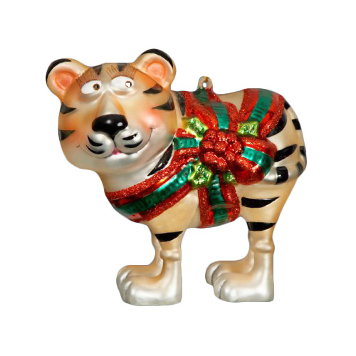 Подарок "Тигр с бантом" — красивое и оригинальное елочное украшение из стекла. Размер игрушки — 9,5 см. Разноцветный тигр понравится вашим детям и сделает вашу новогоднюю елку по-настоящему неповторимой. Он подойдет даже небольшим елочкам, в том числе и настольным. Купить елочную игрушку по приемлемой цене можно в нашем интернет-магазине.