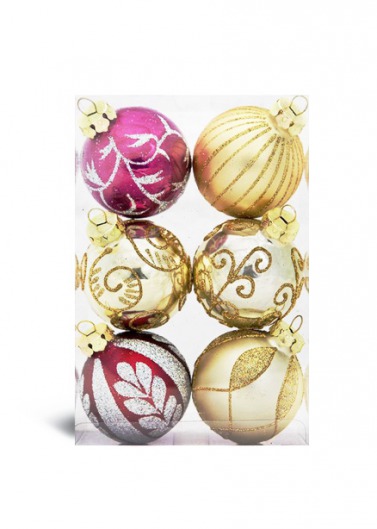 Цена указана за комплект. Сделав заказ, вы получите 6 шаров 2 цветов (золотого и бордово-золотого).