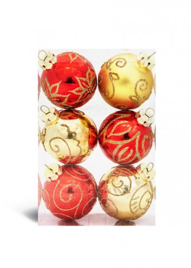 Цена указана за комплект. Сделав заказ, вы получите 6 шариков: 3 красного и 3 золотого цвета. Диаметр каждого шарика: 8 см.
