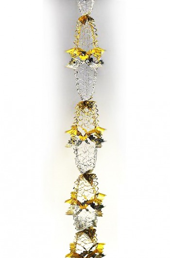 Серебряно-золотая новогодняя гирлянда из фольги длиной 1,8 м станет отличным дополнением к новогоднему интерьеру. Изящная ажурная гирлянда будет нарядно смотреться не только на елке, но и на окнах, шторах, карнизах  — везде, где только пожелаете. При искусственном освещении блестящая новогодняя мишура выглядит просто потрясающе!
