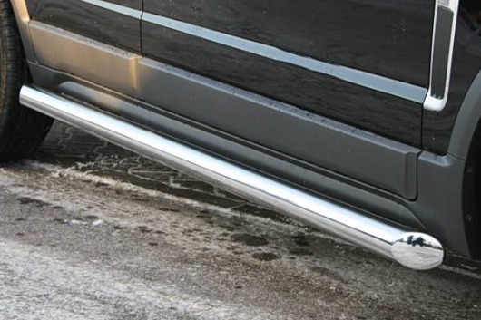 Пороги на Opel Antara – это боковые подножки из нержавеющей стали диаметром 76 мм, которые позволяют более комфортно входить и выходить из салона автомобиля. Подножки Opel Antara очень прочные, надежные и долговечные: они не боятся коррозии, сколов и царапин и выдерживают большие нагрузки.