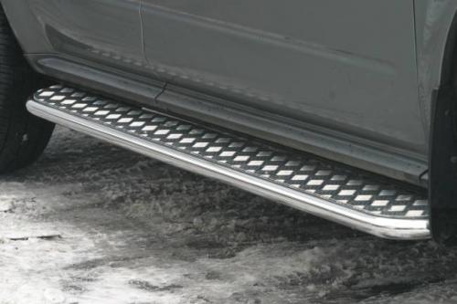 Боковые пороги-подножки сделаны специально для автомобилей Nissan Murano 2005-2008 г.в., поэтому устанавливаются достаточно просто и без повреждений корпуса. Помимо этого, стальные пороги с листом для Ниссан Мурано смотрятся очень стильно и эффектно. Они добавят вашему авто еще больше солидности и внушительности.