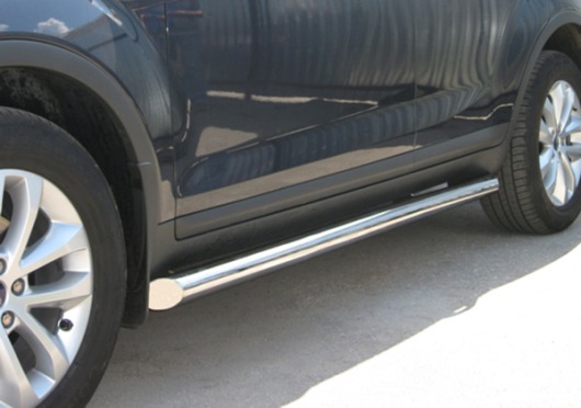Пороги на Ford Kuga – это боковые подножки из нержавеющей стали диаметром 76 мм, которые позволяют более комфортно входить и выходить из салона автомобиля. Подножки Ford Kuga очень прочные, надежные и долговечные: они не боятся коррозии, сколов и царапин и выдерживают большие нагрузки.