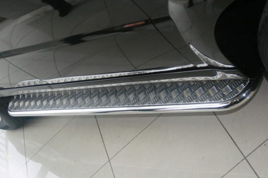 Пороги на SsangYong Rexton – это боковые подножки из нержавеющей стали диаметром 42 мм, которые позволяют более комфортно входить и выходить из салона автомобиля. Подножки SsangYong Rexton очень прочные, надежные и долговечные: они не боятся коррозии, сколов и царапин и выдерживают большие нагрузки.