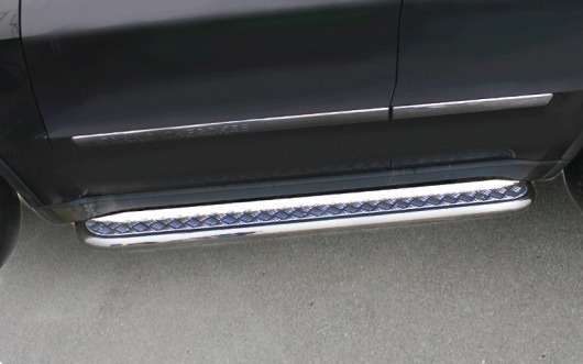Пороги на Jeep Grand Cherokee – это боковые подножки из нержавеющей стали диаметром 60 мм, которые позволяют более комфортно входить и выходить из салона автомобиля. Подножки Jeep Grand Cherokee очень прочные, надежные и долговечные: они не боятся коррозии, сколов и царапин и выдерживают большие нагрузки.
