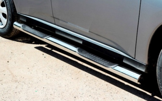 Пороги на Mitsubishi Outlander – это боковые подножки из нержавеющей стали диаметром 76 мм, которые позволяют более комфортно входить и выходить из салона автомобиля. Подножки Mitsubishi Outlander очень прочные, надежные и долговечные: они не боятся коррозии, сколов и царапин и выдерживают большие нагрузки.