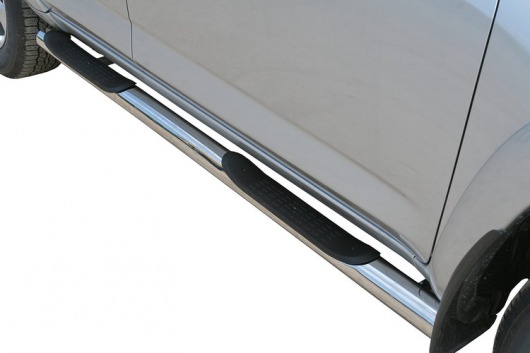 Боковые пороги-подножки сделаны специально для автомобилей Toyota RAV4 LWB, поэтому устанавливаются достаточно просто и без повреждений корпуса. Помимо этого, стальные пороги для Тойота РАВ4 LWB смотрятся очень стильно и эффектно. Они добавят вашему авто еще больше солидности и внушительности.