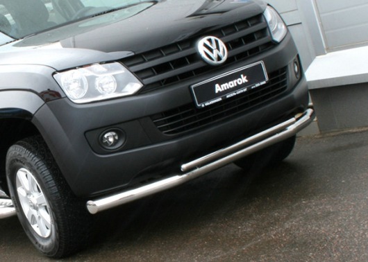 Защита переднего бампера для Volkswagen Amarok – это двойная труба на бампер из нержавеющей стали диаметром 76/42 мм.