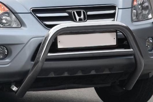 Передняя решетка Honda CR-V (кенгурятник) – это защитная дуга на бампер из нержавеющей стали диаметром 76 мм.