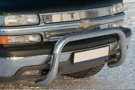 Передняя решетка Chevrolet Tahoe (кенгурятник) – это защитная дуга на бампер из нержавеющей стали диаметром 76 мм.