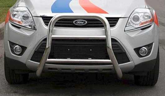 Передняя решетка Ford Kuga (кенгурятник) – это защитная дуга на бампер из нержавеющей стали диаметром 60 мм.