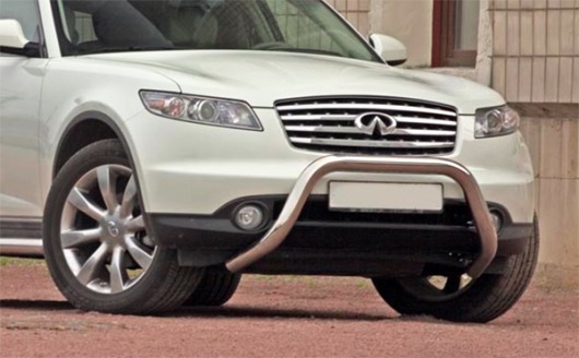 Передняя решетка Infiniti FX (кенгурятник) – это защитная дуга на бампер из нержавеющей стали диаметром 76 мм.