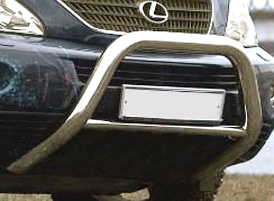 Передняя решетка Lexus RX400 (кенгурятник) – это защитная дуга на бампер из нержавеющей стали диаметром 76 мм.