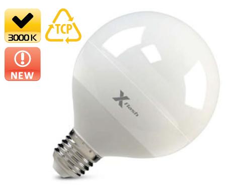 Светодиодная лампа X-Flash Globe E27 13W — лампа общего освещения. Колба лампы шарообразной формы типа "Globe", матовая. Лампа имеет уникальный радиатор из теплорассеивающей пластмассы, который способствует эффективному распределению тепла и снижению температуры внутри лампы, тем самым увеличивается срок службы лампы. Данная модель рассчитана на напряжение 220 В. Мощность диодной лампы X-Flash — 13 Вт., яркость — 1000 Лм, а температура свечения – 3000 K (это желтый свет).