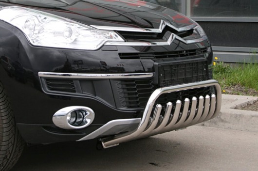 Передняя решетка Citroen C-Crosser (кенгурятник) – это защитная дуга на бампер из нержавеющей стали диаметром 42 мм.