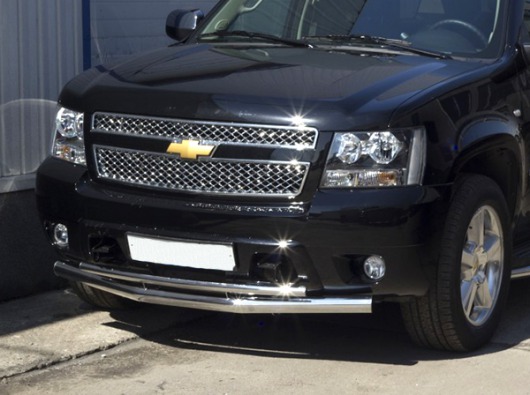 Защита переднего бампера для Chevrolet Tahoe – это двойная труба на бампер из нержавеющей стали диаметром 76/42 мм.