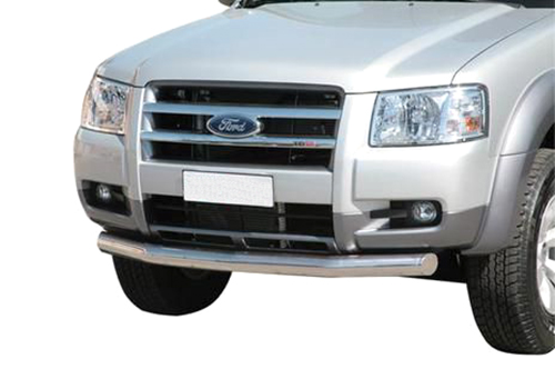 Защита переднего бампера труба предназначена для автомобилей Ford Ranger от 2007 г.в. Вам не придется подгонять защиту под размеры бампера вашего авто. И с монтажом проблем не возникнет: установка защиты переднего бампера производится в штатные отверстия, а значит, необходимость сверлить кузов отпадает.