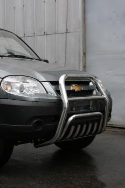 Передняя решетка Chevrolet Niva (кенгурятник) – это защитная дуга на бампер из нержавеющей стали диаметром 60 мм.