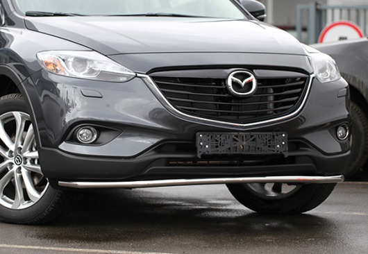 Труба на бампер Mazda CX-9 защищает передний бампер автомобиля от различных механических повреждений при мелких ДТП и неудачных парковках, а также незаменима при езде по бездорожью. А кроме этого, труба на передний бампер Мазда CX-9 смотрится очень стильно и эффектно.