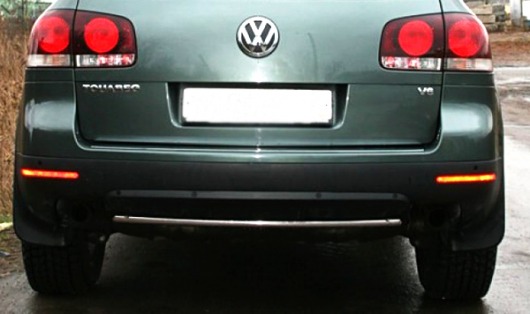 Защита заднего бампера для Volkswagen Touareg – это труба на бампер из нержавеющей стали диаметром 42 мм.
