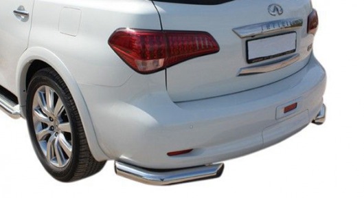 Уголки на задний бампер Infiniti QX56 защищают задний бампер автомобиля от различных механических повреждений при столкновениях на дороге и неудачных парковках. А кроме этого, защита заднего бампера для Инфинити QX56 — это дополнительная деталь тюнинга.