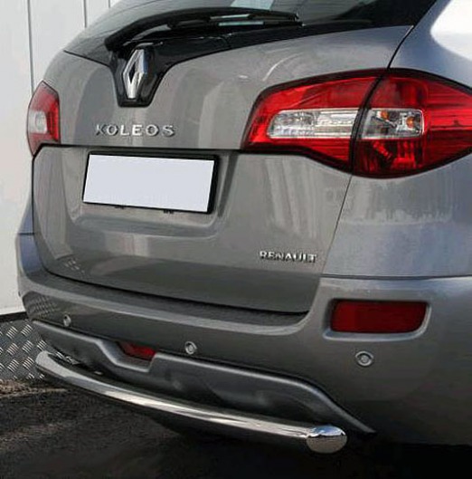Труба на задний бампер Renault Koleos защищает задний бампер автомобиля от различных механических повреждений при столкновениях на дороге и неудачных парковках. А кроме этого, защита заднего бампера для Рено Колеос — это дополнительная деталь тюнинга.
