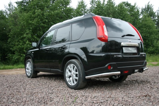 Защита заднего бампера для Nissan X-Trail – это защитные уголки на бампер из нержавеющей стали диаметром 60 мм.