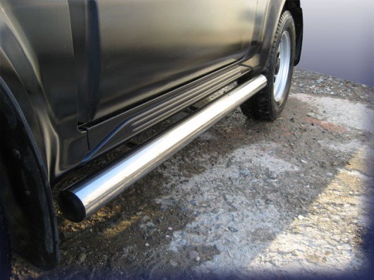 Боковые пороги-подножки сделаны специально для автомобилей Suzuki Jimny от 2006 г.в., поэтому устанавливаются достаточно просто и без повреждений корпуса. Помимо этого, стальные пороги-трубы для Suzuki Jimny смотрятся очень стильно и эффектно. Они добавят вашему авто еще больше солидности и внушительности.
