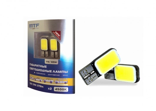 Светодиодные автолампы MTF Ligh T10/W5W изготовлены по технологии COB, которая позволяет увеличить коэффициент светоотдачи без использования радиатора охлаждения. Высококачественные светодиодные чипы гарантируют долгий срок службы ламп и в течение всего этого времени сохраняют приятный глазу белый свет. При этом светодиодные лампы MTF Ligh экологически безопасны, механически прочны и устойчивы к вибрации. Их можно использовать в любых погодных условиях (от -35 до +50°С) без опасения, что они выйдут из строя, к примеру, при сильном морозе.