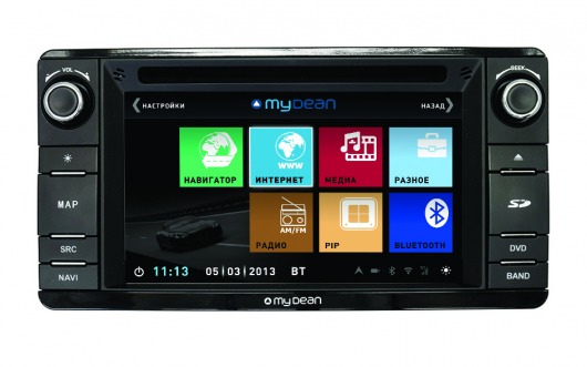 Штатная голова сделана на базе двухъядерного процессора частотой 1 Ггц семейства ARM Cortex с очень высокой производительностью. На ШГУ MyDean 3230 устанавливается операционная система WinCE 6.0 с полностью русифицированным меню. Сенсорный дисплей диагональю 6,2", с разрешением 800х480 и высокой контрастностью позволяет отлично просматривать фото и видео всех основных форматов, включая видео высокой чёткости HD. Также Вы можете просматривать эфирное телевидение, для этого в штатную голову встроен аналоговый ТВ-тюнер.