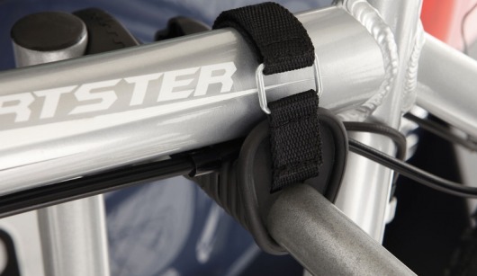 Особое крепление. Велосипед устанавливается в специальные мягкие держатели (чтобы не повредить раму) и прочно фиксируется ремнями, которые входят в комплект с велокреплением. Держатели расположены независимо друг от друга, что особенно важно, если вы перевозите 2 велосипеда одновременно.