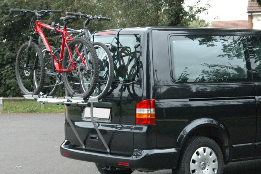 • Велобагажник устанавливается на заднюю дверь автомобиля и надежно фиксируется металлическими скобами