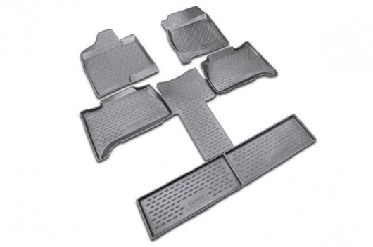 Полиуретановые коврики для автомобиля гладкие, приятные и не пропускают влагу. Черный цвет универсален и подойдет любому авто. В комплекте вы получите 6 ковриков в салон автомобиля.