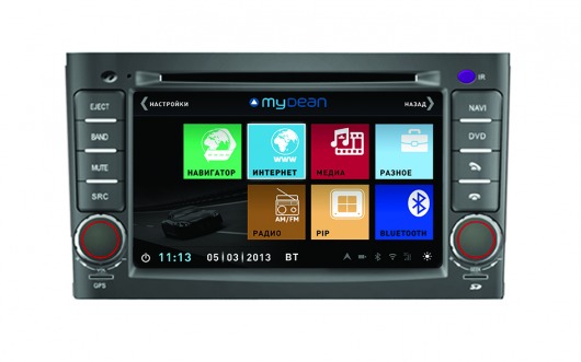 Штатная голова сделана на базе двухъядерного процессора частотой 1 Ггц семейства ARM Cortex с очень высокой производительностью. На ШГУ MyDean 3053 устанавливается операционная система WinCE 6.0 с полностью русифицированным меню. Сенсорный дисплей диагональю 7", с разрешением 800х480 и высокой контрастностью позволяет отлично просматривать фото и видео всех основных форматов, включая видео высокой чёткости HD. Также Вы можете просматривать эфирное телевидение, для этого в штатную голову встроен аналоговый ТВ-тюнер.