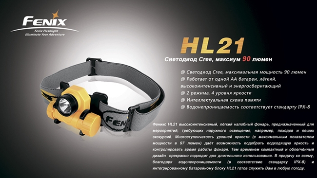 Обратите внимание, что перед тем, как пользоваться налобным фонариком FenixHL21 под водой или в дождь, нужно проверить целостность уплотнительного кольца.