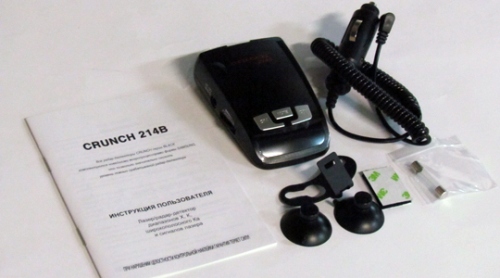 Автомобильный антирадар Crunch 214B можно отнести к новому классу антирадаров, конструкция которых содержит новые микросхемы от Samsung. Эти микросхемы позволяют значительно снизить количество ложных срабатываний. Комплектуется этот аппарат всем необходимым для правильной работы и установки его в автомобиле - шнур питания, механизм крепления с присосками (крепление на лобовое стекло), липучки (крепление на приборную панель) и, конечно же, инструкция на русском языке.