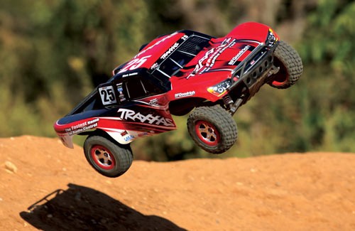 Радиоуправляемый внедорожник Traxxas Slash (TQ) - TRX58034 имеет задний привод. Машина на пульте управления оснащена мощным электродвигателем Тraxxas Titan 550 12T, регулятором оборотов Traxxas XL-5 и емким аккумулятором NI-MH 8.4v 3000mAh. Это позволяет авто разогнаться до 50 км/ч. Кроме того, дизайн кузова радиоуправляемого грузовика в точности повторяет оформление реальных автомобилей, участвующих в гонках.