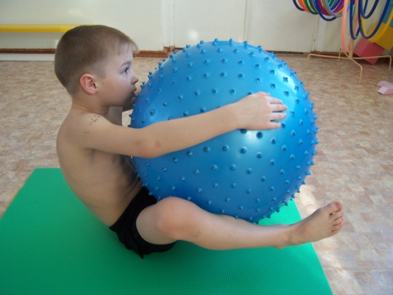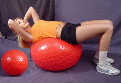 • Упражнения с массажным мячом-фитболом  помогают при болях в спине, игольчатая поверхность гимнастического мяча благотворно воздействует на нервные окончания и способствует улучшению кровообращения.