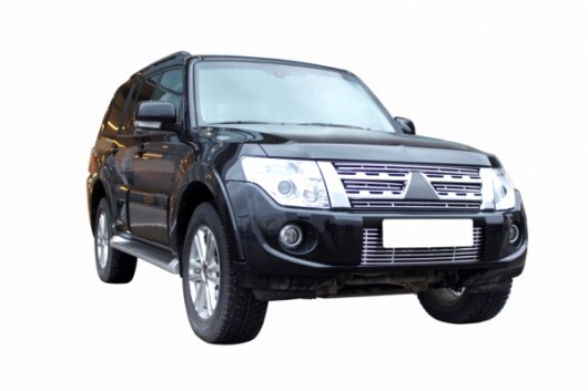 Тюнинг. Накладка на воздухозаборник Митсубиси Паджеро, несмотря на небольшой размер, сделает «лицо» вашего автомобиля еще более стильным и привлекательным, особенно в сочетании с накладками на радиатор для Mitsubishi Pajero IV.