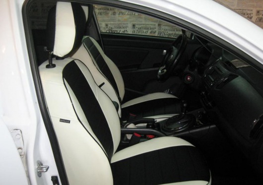 Автомобильные модельные чехлы для Kia Sportage III от 2010 г.в. (бело-черного цвета) полностью повторяют контуры штатной обивки сидений. Вы можете быть уверены, что такие чехлы на сидения не потеряют форму даже спустя многие годы использования. Модельные чехлы "Автопилот" допускают использование штатного подогрева сидений, а также подходят сидениям с подушкой безопасности.